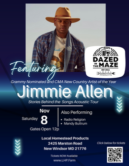 JIMMIE ALLEN performing LIVE at Dazed in the Maze, Saturday November 8th